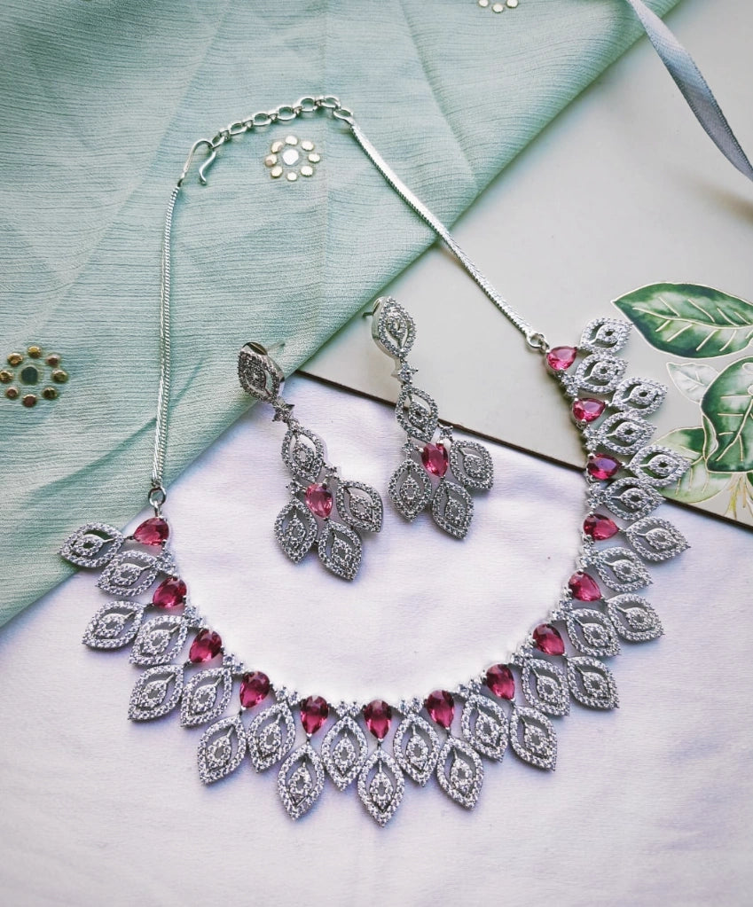 Style and Trends offers an exclusive collection of finest quality crafted Fashion Jewellery in various colors. We make sure that our collection of American Diamond Necklace With silver Plating are beautiful, elegent & will surely galvanize you, because our products are unique, comfortable, fashion forward & very popular for the rich look.