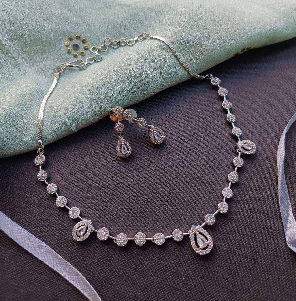 •Material : Silver Plated with American Diamond stone