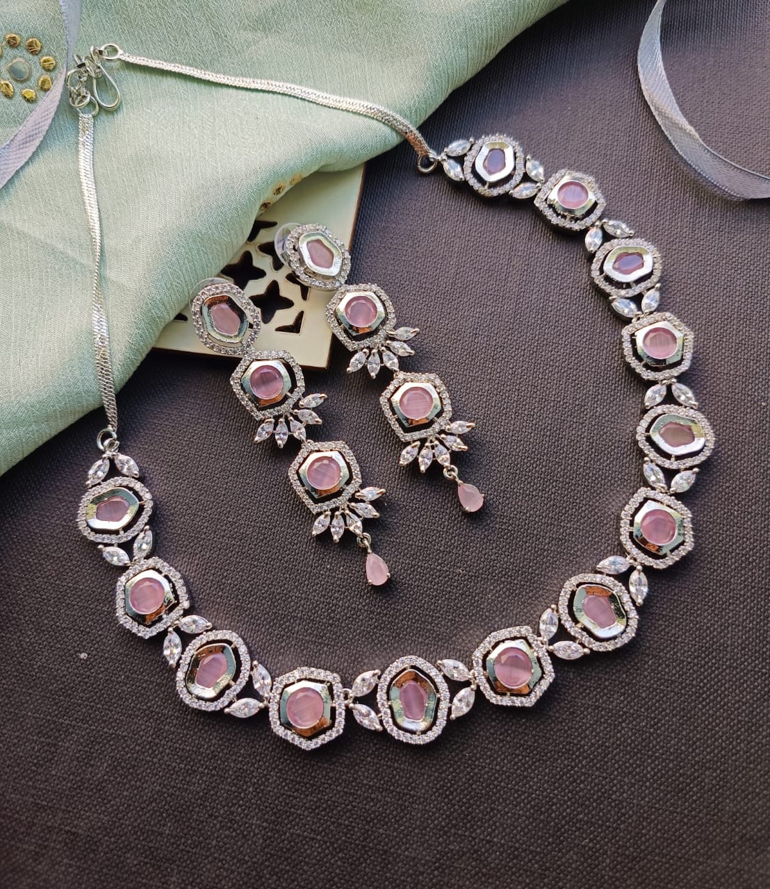 •Material : Silver Plated with American Diamond stone