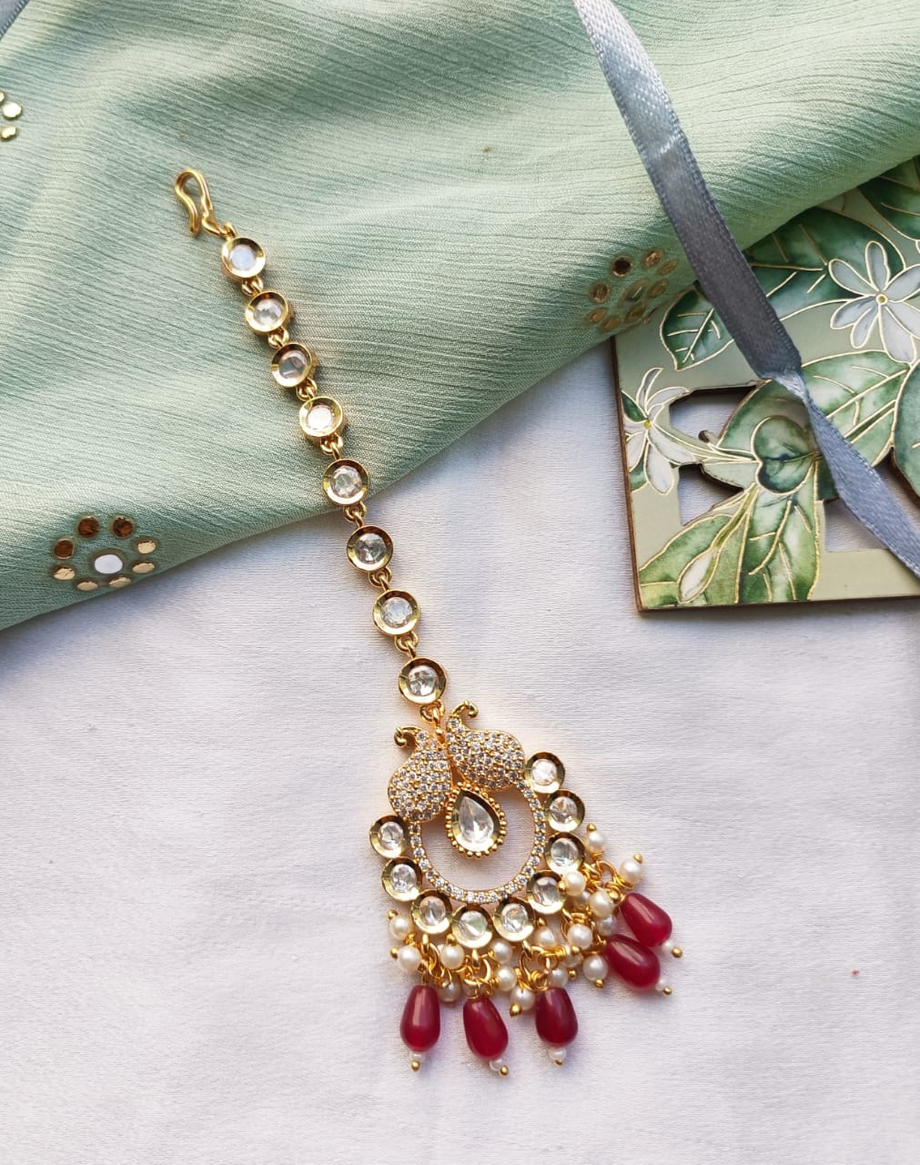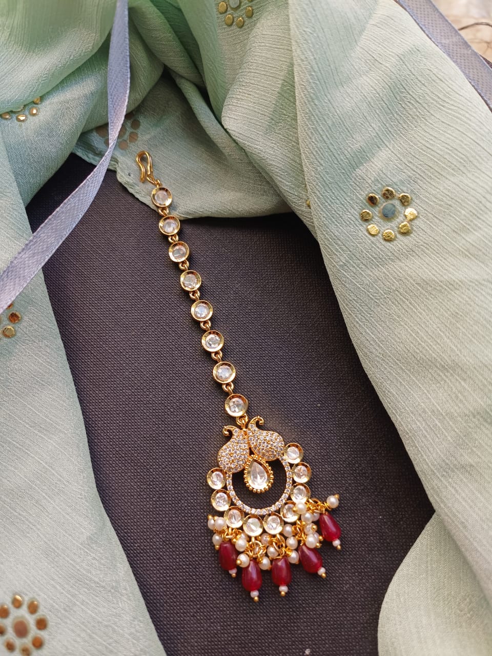 Bring an extra Ordinary glam to your attire with this gorgeous American Diamond Maangtika for festive look.Be your own kind of beautiful.