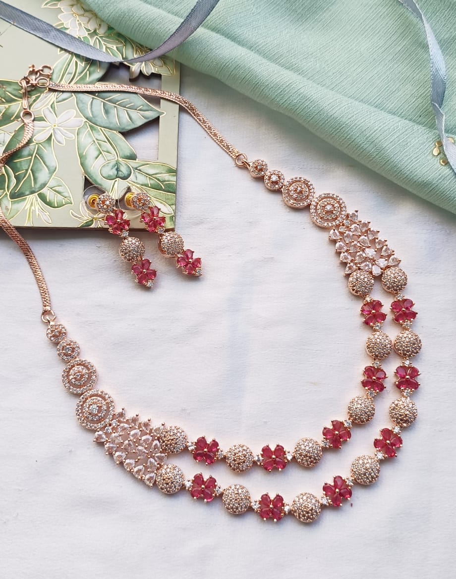 Style and Trends offers an exclusive collection of finest quality crafted Fashion Jewellery in various colors. We make sure that our collection of American Diamond Necklace with Rose Gold Plating are beautiful, elegent & will surely galvanize you, because our products are unique, comfortable, fashion forward & very popular for the rich look.